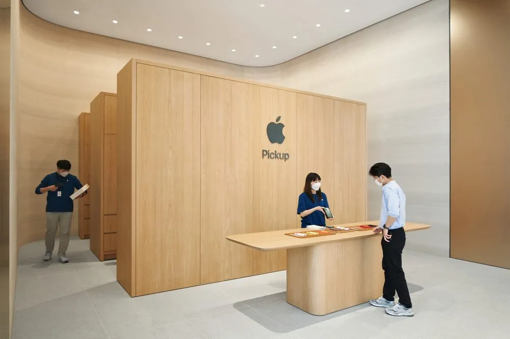 店内では、テーブルや通路でAppleの最新製品やサービスをご覧いただけます。韓国で最近ローンチされたApple TV+もその一つです。アジア初となるApple Pickup専用エリアが新設され、オンラインで注文した製品の受け取りがさらに便利になりました。