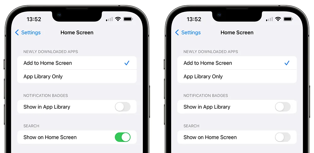 幸いなことに、Appleはこれを簡単に削除できるようにしました。設定を開いて「ホーム画面」を検索し、メインのホーム画面オプションをタップして、「検索」をオフにするだけです。